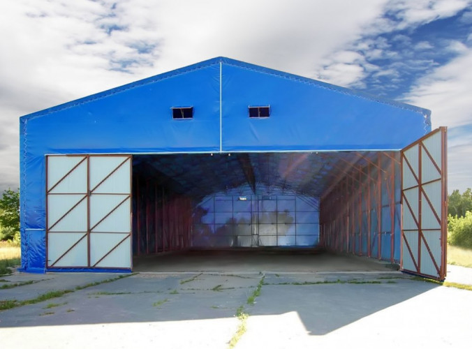 Ангар из профлиста имеет прочный металлический каркас и различную форму, размеры и конфигурация постройки определяются в проекте. Возведение включает в себя создание фундамента, несущих конструкций, кровельные работы, установку дверей. По желанию заказчика ангар может быть построен с оконными проемами.